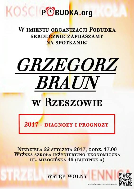 22 stycznia (niedziela) 2017 roku – Rzeszów, Wyższa Szkoła Inżynieryjno-Ekonomiczna, ul. Miłocińska 46 (budynek A). Spotkanie rozpoczynamy o godz. 17:00 natomiast wcześniej, o godz. 15:00 zapraszamy na Mszę Św. trydencką w Kościele p.w. Świętego Krzyża w Rzeszowie, ul. 3 Maja 20.