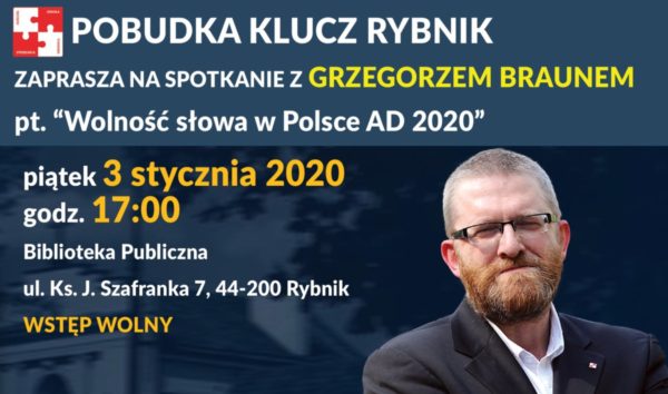 Tym razem naszym gościem będzie Poseł Grzegorz Braun, który wygłosi wykład p.t. „Wolność słowa w Polsce AD 2020”