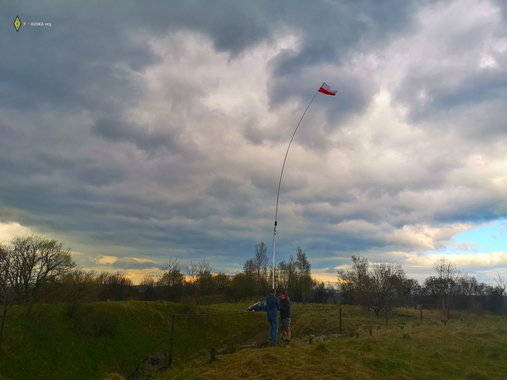 Zainstalowanie na niewielkim, rozsuwanym aluminiowym 6 metrowym maszcie anteny o długości 7 metrów, podczas mocno wiejącego wiatru – nawet we dwie osoby, okazało się sporym wyzwaniem.