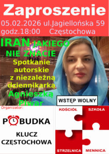 Częstochowski Klucz POBUDKI zaprasza na spotkanie z niezależną dziennikarką panią Agnieszką Piwar pt.„IRAN JAKIEGO NIE ZNACIE”.